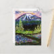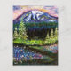 Uma pintura mestiça do Monte Rainier com um céu pastel rosa.