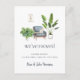 Mudamos - novo cartão de anúncio caseiro com uma ilustração de aquarela de um interior boho com plantas de gatos e casas.