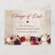 Cartão Postal Mudança de Data Madeira Rústica Floral Burgundy Ve