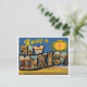Mudando para o Novo México uma mudança divertida de cartão de notificação de endereço baseado em um cartão postal de viagens vintage "Saudações do Novo México" com as palavras mudadas para "mudar para". Cenas da arquitetura e história do Novo México enchem as letras e o fundo. Certifique-se de personalizar o texto no verso com as informações do seu novo endereço. Enviar uma notificação de endereço novo e retrô divertida!