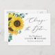 Modelo de Anúncio de Evento Adiado - Mudar a Data Elegante Verdejante Eucalipto Girassol Cartão-Postal.