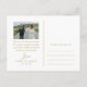Elegante design de cartão postal de agradecimento de casamento com várias fotos apresenta dois (2) espaços para fotos do dia do casamento com "sempre grato", monograma e mensagem de agradecimento que pode ser personalizada na frente e no verso. A cor do texto dourado antigo e a cor de fundo branca podem ser modificadas para combinar com suas fotos. Filtros de foto estão disponíveis para personalizar.