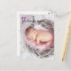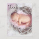 Personalizado com a foto do bebê na frente e mensagem especial na parte de trás. Este design usa uma fonte elegante desenhada à mão para um toque de sofisticação. Expresse sua entusiasmo de anunciar o nascimento do seu filho e envie sua gratidão ao mesmo tempo. Formato vertical.