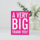 Um obrigado muito grande que você postcard com fontes modernas e grandes sobre fundo de cores brilhantes. Está pronto para ser personalizado e é adequado como obrigado que você envia para amigos, família, mãe, pai, professor, enfermeiro, chefe, funcionário, treinador, casamento, chá de panela ou chá de fraldas. Para editar este modelo de design, basta alterar o texto conforme mostrado acima. Clique no botão 'Personalizar' para adicionar mais imagens ou texto, personalizar fontes e cores. Imprima sua família e amigos com o design perfeito!
