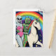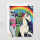 Cartão Postal Mulher alienígena e Robô Verde Apaixonado pelo Uni