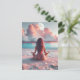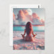 Cartão Postal Mulher Bonita Meditando na Coberta da Praia