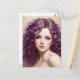 Cartão Postal Mulher com Cartão-postal de cabelo roxo encaracola