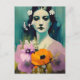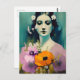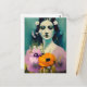 Cartão Postal Mulher e Flores de Papoila