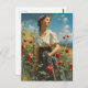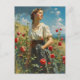 O cartão postal captura uma cena de eterno: uma mulher, lembrando uma era passada, dona o traje de um agricultor, orgulhosamente em meio a um mar de rosas vibrantes. Sua roupa exude simplicidade, refletindo o encanto rústico da vida agrícola. Os rosas cuidadosamente tendidos criam um pano de fundo pitoresco, infundindo a cena com uma beleza nostálgica e pastoral. O cartão-postal encapsula um momento idílico congelado no tempo, celebrando tanto a graça da mulher quanto a elegância natural do florescente campo.
