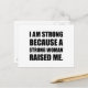 Força feminina, coragem, determinação e resiliência na citação que sou forte porque uma mulher forte me criou. Veja este design personalizado engraçado em camisetas, camisas, canecas, capas, presentes e roupa.