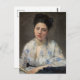 Jovem Mulher (1871) de Berthe Morisot é um retrato delicado que exemplifica o estilo impressionista assinado pelo artista. Usando pinceladas leves e uma paleta colorida, Morisot captura a elegância e introspecção de seu sujeito. A pintura reflete um sentimento de quietude contemplação, com as delicadas características e a suave expressão da jovem banhada à luz natural. Esta peça destaca a capacidade de Morisot de transmitir emoção e atmosfera com uma sutil e expressiva escova. Use as ferramentas de design para adicionar texto personalizado ou personalizar a imagem.
