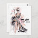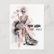 Mulher loira de vestido-leopardo com copo de vinho em aquarela. Cartão Postal