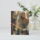 Cartão Postal Mulher loura na floresta de cogumelos