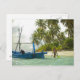 Cartão Postal Mulher num pequeno barco de pesca tradicional.
