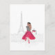 Adicione um toque de charme parisiense à sua correspondência com este cartão postal com uma mulher parisiense em frente à icônica Torre Eiffel.