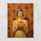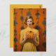 Cartão Postal Mulher Retro Segurando Pumpkin