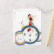Cartão Postal Mulher sentada no relógio e segurando uma xícara d