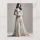 A mulher está vestindo um Ao Dai, um longo e fluente túnico elegantemente adaptado à sua estrutura, com grandes fendas em ambos os lados. O Ao Dai é feito de tecido delicado, adornado com padrões florais intrincados e cores vibrantes, simbolizando o patrimônio cultural e a graça. Abaixo do túmulo, ela veste calças soltas que complementam a elegância da roupa. Sua postura exude confiança e postura, e o claro plano de fundo enfatiza sua beleza e a sofisticação do traje vietnamita tradicional.