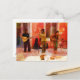Cartão-postal com uma pintura artística expressiva de três músicos de rua que tocam música em seus instrumentos, que incluem um mandolim, uma flauta e um violão. Tonalidades ricas de amarelo, laranja e marrom criam uma qualidade mágica de eterno quente no estilo de pintura impressionista.