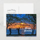 Cartão Postal Músicos do Pôr do Sol Costeiro no Aniversário Silh