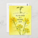 "Tudo que você precisa é de uma semente de mostarda" de fé Cartão de estímulo cristão que seja decorado com um tema botânico de flores florescentes, uma muda e pequenas sementes em uma mão de fundo amarelo quente pintada com aquarela.