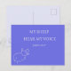 This minimalist Christian postcard features the Bible verse “My sheep hear My voice” (John 10:27) with a soft, hand-drawn sheep illustration on a calm blue background.