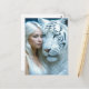 Bonito loira com tigre branco místico. Arte de fantasia etérea.