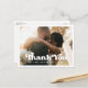 Expresse sua gratidão e obrigado aos seus convidados pela sua presença e belos presentes com este cartão com fotos personalizável com um estilo moderno. Basta adicionar sua foto favorita de casamento, mudar as cores e escrever sua própria obrigado.