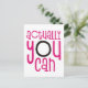 Tipografia engraçada com citação encorajadora Na verdade você pode em rosa com um toque de preto sobre um fundo branco. O plano de fundo pode ser alterado para uma cor diferente se você desejar.