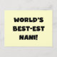 Cartão Postal Nani T-shirts e presentes do mundo de texto negro
