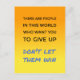 Este é um postal inspirador, com uma citação para encorajar vocês a pensar positivamente e ser forte. "HÁ PESSOAS NESTE MUNDO QUE QUEREM QUE VOCÊ DESISTA. NÃO OS DEIXE GANHAR". O texto é preto e azul, num fundo amarelo brilhante e laranja.