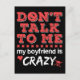 Não fale comigo que meu namorado é design doido é um presente engraçado para mulheres ou adolescentes com um namorado ciumento. Avise a todos para não flertar porque você tem uma namorado louca.