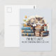 Comece o ano escolar com uma dose de sabedoria felina! O cartão postal 'Eu não sou preguiçoso, estou apenas conservando energia como um gato' mostra um gato giro esnozando sobre pilhas de livros, misturando humor e motivação. Perfeito para amantes de gatos e estudantes, este design brincalhão lembra que você recarrega e fica focado no sucesso. Peça a sua agora!