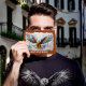 Cartaz excelente para qualquer um com o espírito de uma águia soprando no céu. Pintura de aves castanhas e azuis de uma águia careca em voo com suas asas se espalham. O texto personalizado na parte inferior é "Nascer de voar como uma águia".