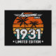 Cartão Postal Nascido em 1931 Edição Limitada Retro Incrível Des