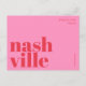 Send a stylish and contemporary greeting from Nashville, Tennessee with this modern typographic postcard. Featuring the word Nashville split across two lines in bold, decorative lowercase letters in bright red on a soft pink background, this design is both minimalist and eye-catching. The phrase "greetings from" appears above in a sleek, thin sans serif font, adding a modern, elegant touch. Perfect as a travel keepsake, a decorative piece, or a unique way to send love from your favorite city. Ideal for fans of contemporary design, typography, and wanderlust.