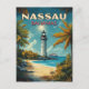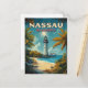 Capture a beleza idílica de Nassau, nas Bahamas, com este cartão-postal deslumbrante. Projetado no estilo de uma pintura a óleo, este pôster de viagem apresenta um farol pitoresco e uma praia serena com palmeiras. Sob o céu azul ensolarado com raios radiantes, um cruzeiro pode ser visto ao fundo. Perfeito para colecionadores e entusiastas de viagens, este cartão-postal traz o charme tropical e a atmosfera vibrante de Nassau à vida.