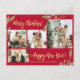 Cartão Postal Natal da Colagem de Fotos Botânica Vermelha Elegan