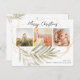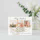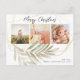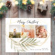 Folhas de ouro e botânica verdes, elegantes, 3 cartões postais de colagem fotográfica, com a escrita química moderna e a falso moldura de folha de ouro e a folhagem das folhas botânicas são festivos e minimalistas. O texto de saudação de "Feliz Natal" é escrito em um belo tipo de letra tipografia escrita com letra preta em fundo branco, e seus nomes e uma mensagem no sentido inverso são em caracteres simples. Este cartão postal é um encantador guardião para a sua família e amigos no Natal e Férias!