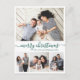 Cartão Postal Natal da Colagem de Fotos do Script Verde na moda