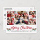 O Cartão-postal de Natal Merry para a Colagem de Fotos da Família de Escoteiros Modernos 5 inclui Watercolor Christmas Holly Berries - Script Vermelho
