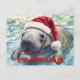 Cartão Postal Natal de Aquarela do Peixe-Boi da Flórida