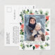 Cartão Postal de Natal de Foto de Folhas de Azevinho em Aquarela Férias.