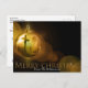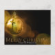 Personalize a frente e trás deste belo cartão postal de Natal. Um maravilhoso design cristão com cruz de Cristo refletido numa bola de Natal de ouro com os seus nomes perto do fundo abaixo de um brilhante Natal Feliz. Você pode personalizar a saudação de Natal, seu endereço de retorno e seus nomes no script próximo à parte inferior com espaço para adicionar uma nota pessoal manuscrita.