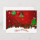 Cartão de Posto de Natal personalizável com árvore de Natal, sinos e renas em um Tema Vermelho atraente.