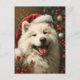 Desejando-lhe uma estação festiva penosa! Este cartão de Natal apresenta um adorável Samoyed fazendo um chapéu de Papai Noel, espalhando alegria com seu charme fofo. A imagem caprichosa captura o espírito das festas, o calor promissor e a alegria. Envie aos seus entes queridos uma dose de felicidade de férias com este cartão de emocionante, como o Samoyed traz um toque de magia canina aos seus desejos de Natal.