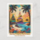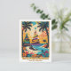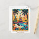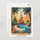 Um belo cartão postal de Natal tropical com uma imagem vibrante e colorida de palmeiras, uma praia, flores e duas árvores de Natal! Todos os textos podem ser personalizados.