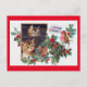 Cartão Postal Natal, Xmas Kitten e Little Bird