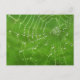 A beleza da natureza - macro imagem de uma teia com gotículas matinais de orvalho sobre fundo verde.