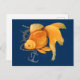 Cartão postal com ilustração náutica de peixe-dourado, leme e âncora em fundo azul-marinho.
